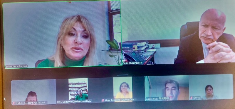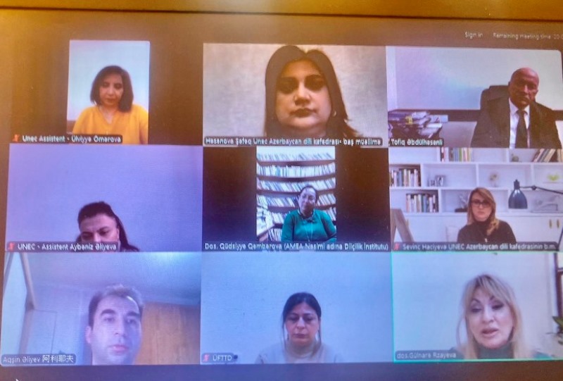 UNEC-in Ümumi Fənlərin Tədrisinin Təşkili Departamenti və “Azərbaycan dili” kafedrasının birgə təşkilatçılığı ilə akademik əməkdaşlığın genişləndirilməsi məqsədilə Çin Xalq Respublikasının Pekin Xarici Dillər Universitetinin “Azərbaycan dili” kafedrası ilə onlayn elmi seminar keçirilib.