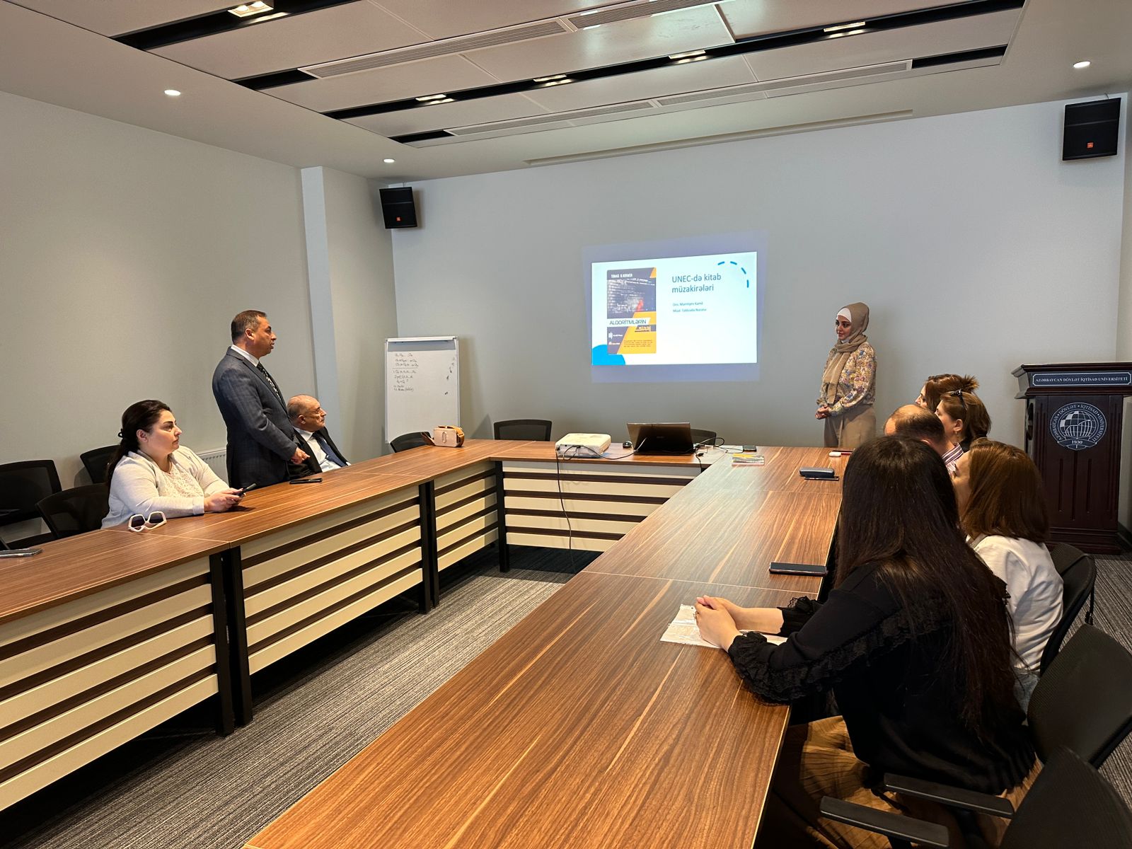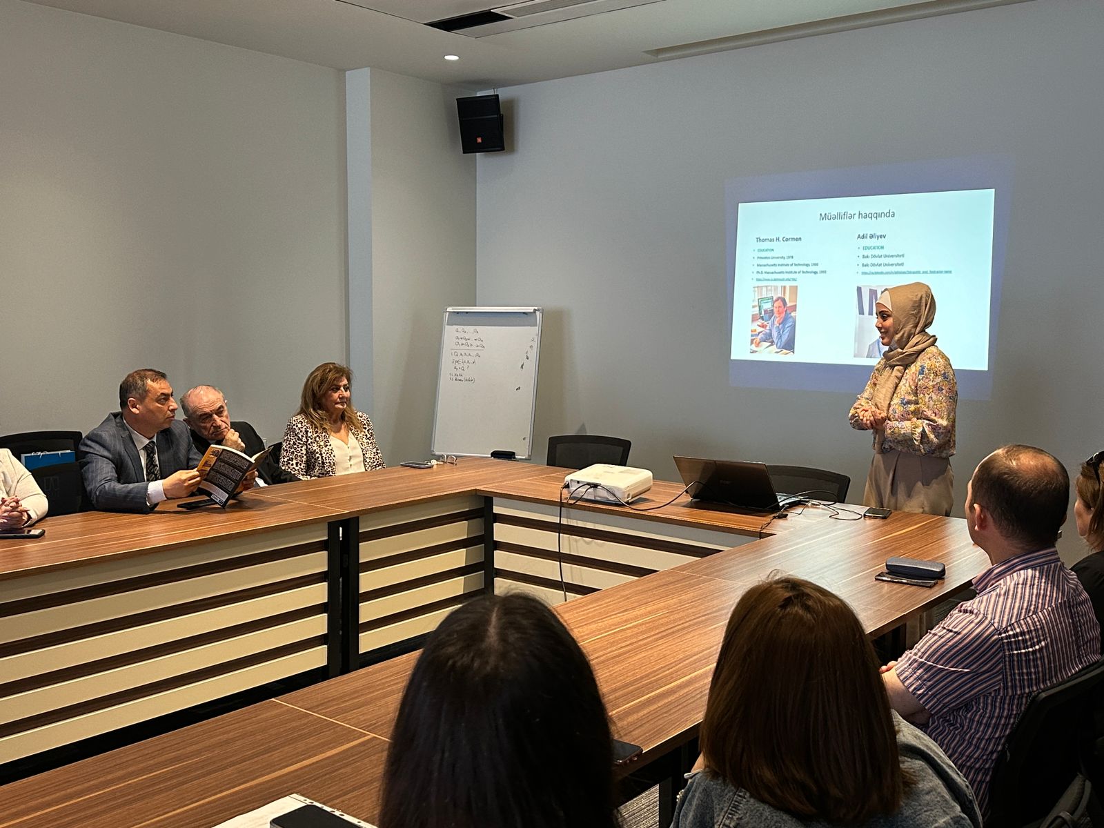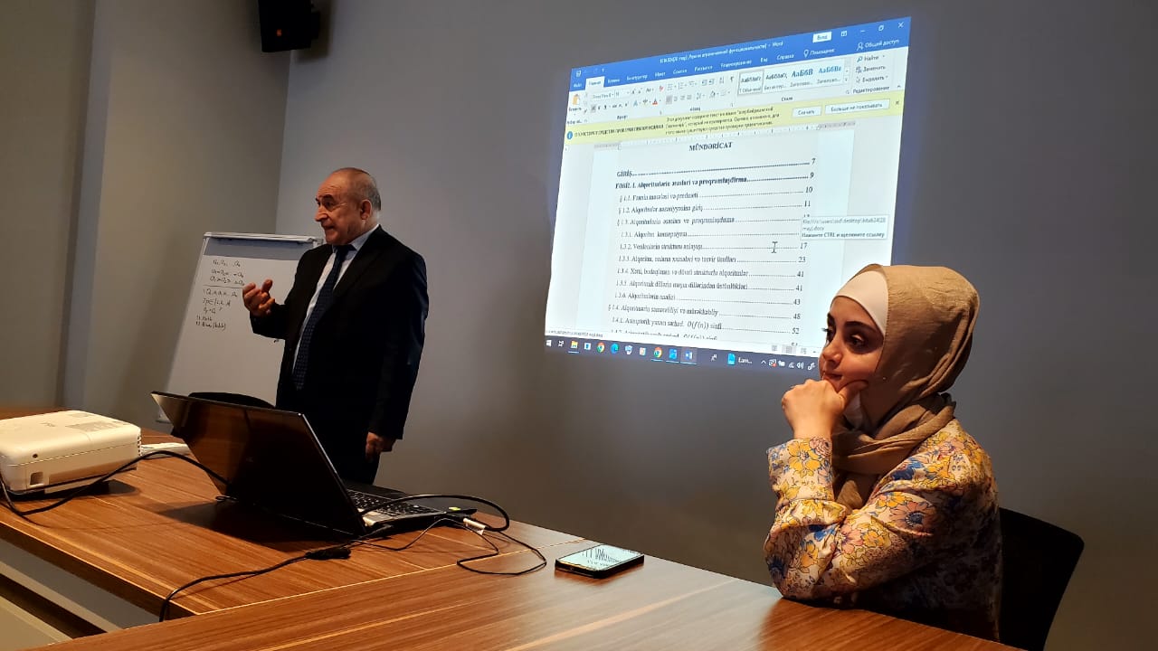 Kafedranın gənc müəllimi Nuranə Talıbzadə alqoritmləri daha geniş auditoriyaya açmaq üçün unikal olan bu kitabın müəllifləri, fəsilləri və fənn proqramına uyğunluğu haqqında geniş təqdimatla çıxış edib.