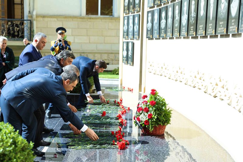 Tədbir iştirakçıları öncə UNEC-in şəhid tələbə və məzunlarının xatirəsinə ucaldımış Abidə kompleksini ziyarət edərək, önünə gül dəstələri düzüblər.