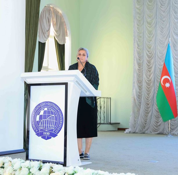 N.Mehdixanlı ölkəmizin azadlığı və ərazi bütövlüyü yolunda UNEC-in 48 tələbə və məzununun şəhidlik zirvəsinə yüksəldiyini, yüzlərlə gəncin isə qazi və Vətən müharibəsi iştirakçısı olduğunu deyib.