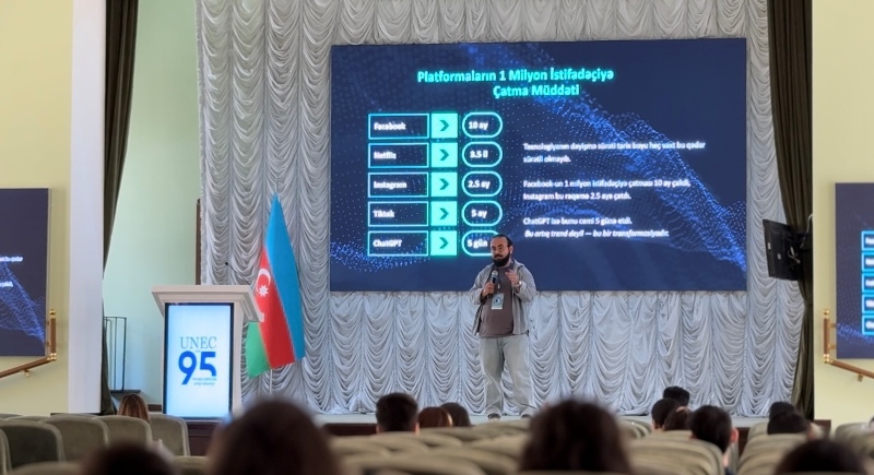 Süni intellekt mütəxəssisi Ümid Salay isə “Yaradıcı süni intellektin həyatımızdakı rolu” mövzusunda çıxışı ilə süni intellekt texnologiyalarının gündəlik həyata və yaradıcılığa təsirindən bəhs edib.