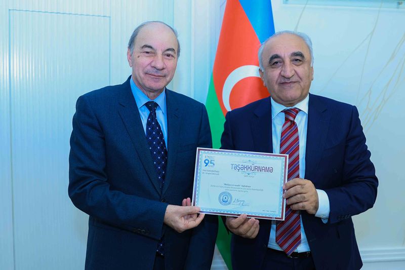 Sonda prof. Ədalət Muradov fərqlənən kafedralara “Təşəkkürnamə”ləri təqdim edib.