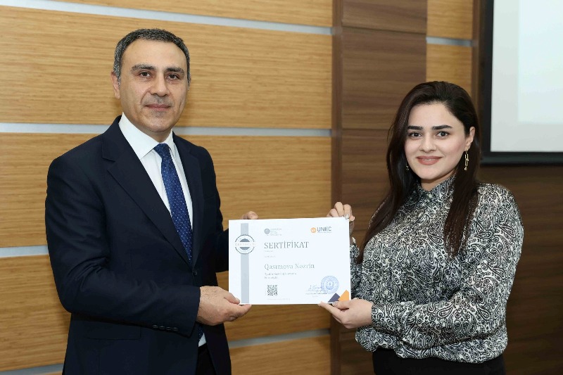 Tədbirdə UNEC-in Tədris işləri üzrə prorektoru, dosent Gəray Musayev, UNEC Rəqəmsal Təhsil Mərkəzinin direktoru Kəminə Cəbrayılova və kursun məzunları iştirak ediblər.