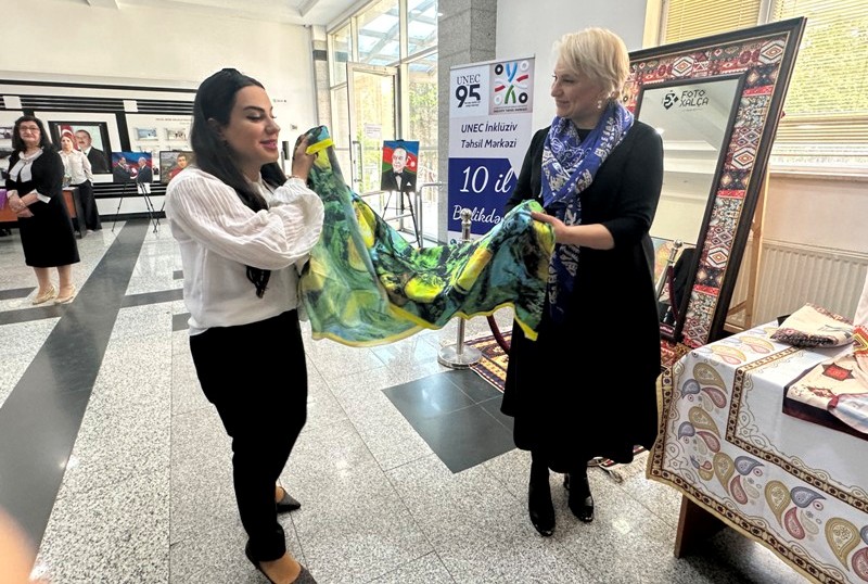 UNEC-də İnklüziv Təhsil Mərkəzi, Dizayn Məktəbi və “Foto-Xalça” şirkətinin birgə təşkilatçılığı ilə Ümummilli Lider Heydər Əliyevin anadan olmasının 102-ci ildönümünə həsr olunmuş əl işləri sərgisi təşkil edilib.