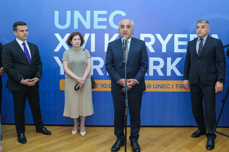 Açılış mərasimində çıxış edən UNEC-in rektoru professor Ədalət Muradov Karyera yarmarkasında 105 şirkət tərəfindən 1050-dən çox vakansiyanın təqdim edildiyini bildirib. O, tələbə və məzunların məşğulluq göstəricisinin vacibliyinə diqqət çəkərək, onların layiqli iş tapmasının universitet qarşısında duran əsas vəzifələrdən biri olduğunu qeyd edib: “Formalaşdırdığımız insan kapitalına əmək bazarı tərəfindən verilən dəyərin göstəricisi kimi məzunlarımıza təklif olunan əməkhaqqının məbləği fikrimizcə, daha önəmlidir" deyə, rektor bildirib.