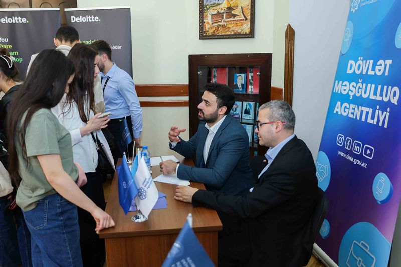Sonra rəsmi qonaqlar təqdim edilən vakansiyalar və onların tələbləri ilə yaxından tanış olublar. İşəgötürənlər təmsil etdikləri müəssisələrin fəaliyyət sahələri, vakansiyalar üçün müəyyənləşdirilən tələblər və işə qəbul prosesi barədə ətraflı məlumat veriblər.