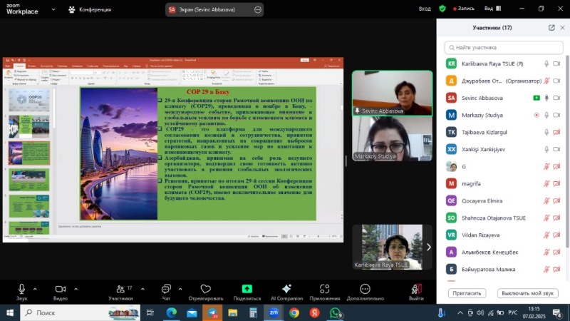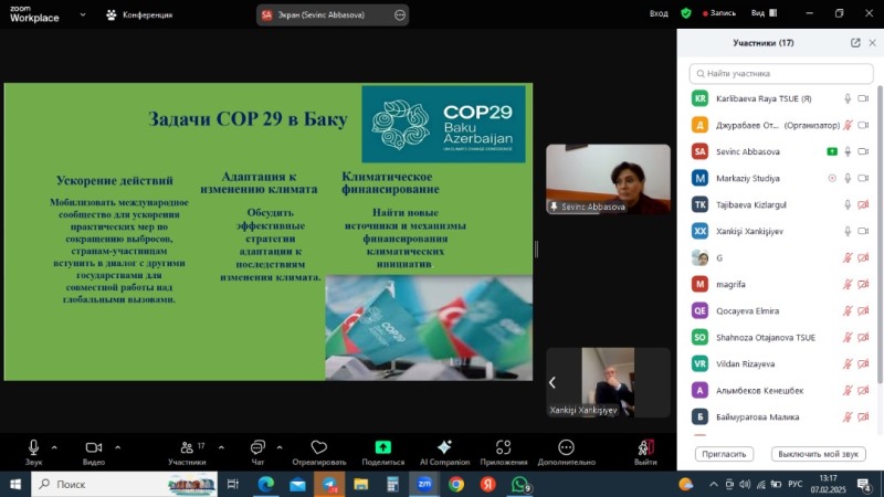 UNEC-in "Tətbiqi iqtisadiyyat" kafedrasının və Daşkənd Dövlət İqtisad Universitetinin birgə təşkilatçılığı ilə “Yaşıl iqtisadiyyat: imkanlar və çağırışlar” adlı onlayn beynəlxalq elmi-praktiki seminar keçirilib.