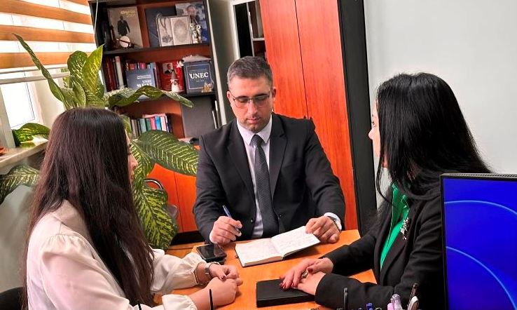 “İnnab Business School”un direktoru Rauf Hacıyev və Korporativ satış nümayəndəsi Nərmin Sarıyeva UNEC-in Təcrübənin təşkili şöbəsinin qonağı olub. Görüşdə UNEC-in bakalavrları və magistrantları üçün faydalı ola biləcək təcrübə proqramları, təlim və tədbirlərlə bağlı müzakirələr aparılaraq, birgə əməkdaşlığa dair mümkün istiqamətlər müəyyənləşdirilib.