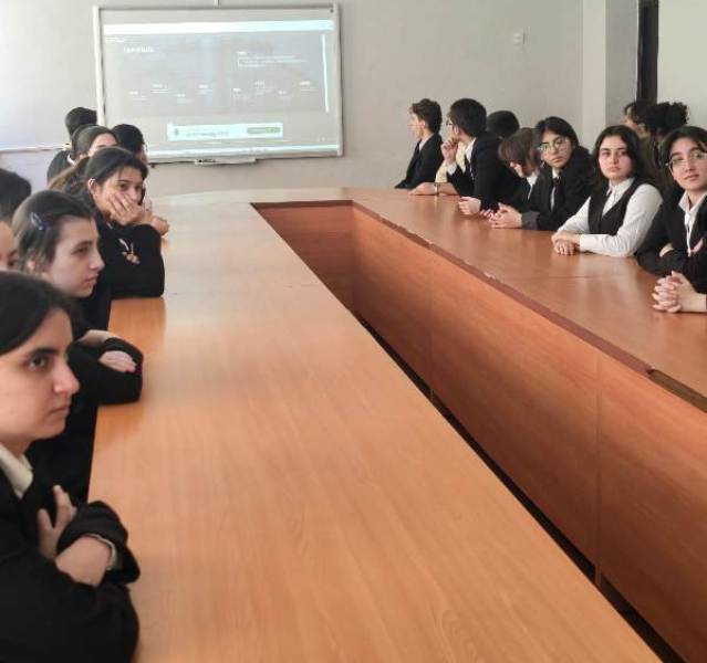 UNEC-in “Elm gösəldir: məktəbdən elmə” layihəsi çərçivəsində “Rəqəmsal texnologiyalar və tətbiqi informatika” kafedarsının əməkdaşları, professor Rəsul Balayev, dosentlər Təranə Əliyeva və Musa Musayev Sumqayıt şəhər N.Gəncəvi adına Texniki və Təbiət elmləri liseyində buraxılış siniflərinin 50-dən artıq şagird və pedaqoji heyət üzvləri ilə görüş keçirib.