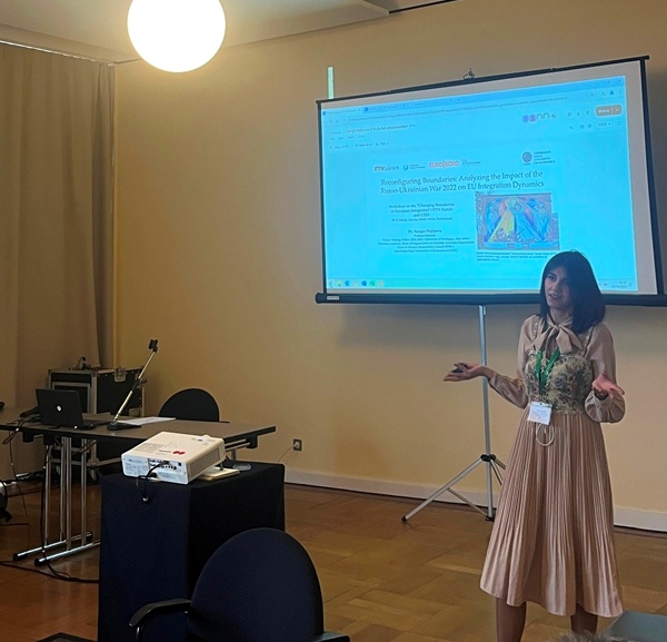 Nərgiz Hacıyeva seminarda "Reconfiguring Boundaries: Analyzing the Impact of the Ukraine-Russia War 2022 on EU Integration Dynamics" mövzusunda elmi məruzə təqdim edib. Çıxış alimlər tərəfindən böyük maraqla qarşılanıb və Avropa İtrifaqının inteqrasiya dinamikalarının həm coğrafi (horizontal), həm də siyasət (vertikal) aspektlərinə toxunaraq, Azərbaycanın enerji siyasətinin bu proseslərdə oynadığı rolu vurğulayıb.