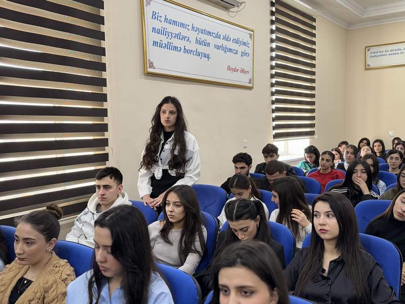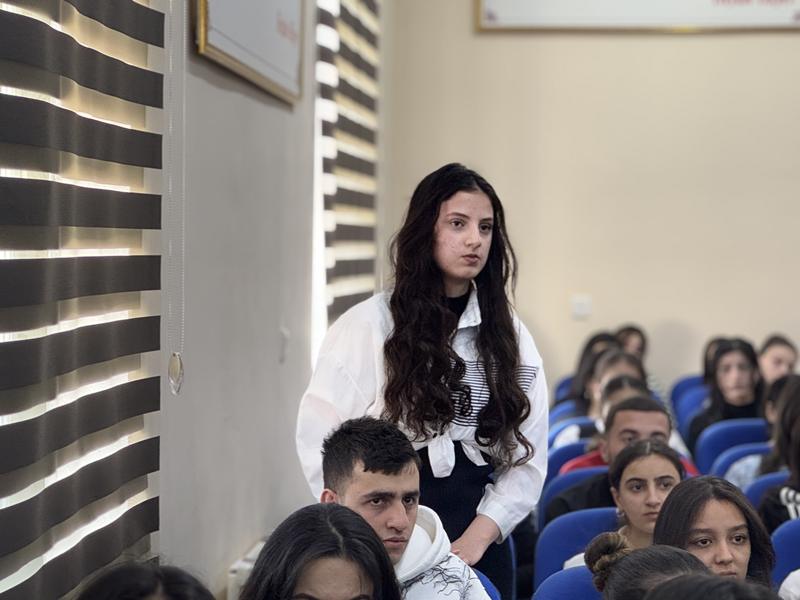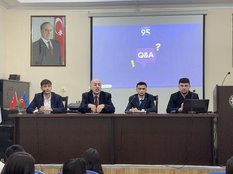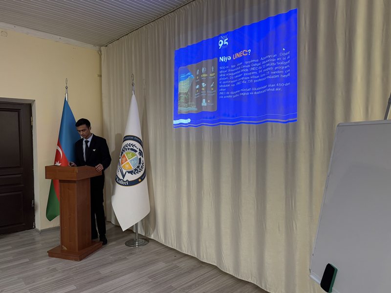 Görüşdə tələbələrə UNEC-in məlumatlandırıcı bukletləri təqdim olunub, eyni zamanda onları maraqlandıran suallar cavablandırılıb.