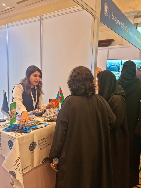 UNEC-in Beynəlxalq əməkdaşlıq departamentinin mütəxəssisi Jalə Heydarova və Xarici dillər departamentinin müəllimi dos. Sevər Orucova sərgidə UNEC-i təmsil ediblər. Qeyd edək ki, UNEC ilk dəfə olaraq Körfəz ölkələri bölgəsində Beynəlxalq təhsil sərgisində iştirak edir.