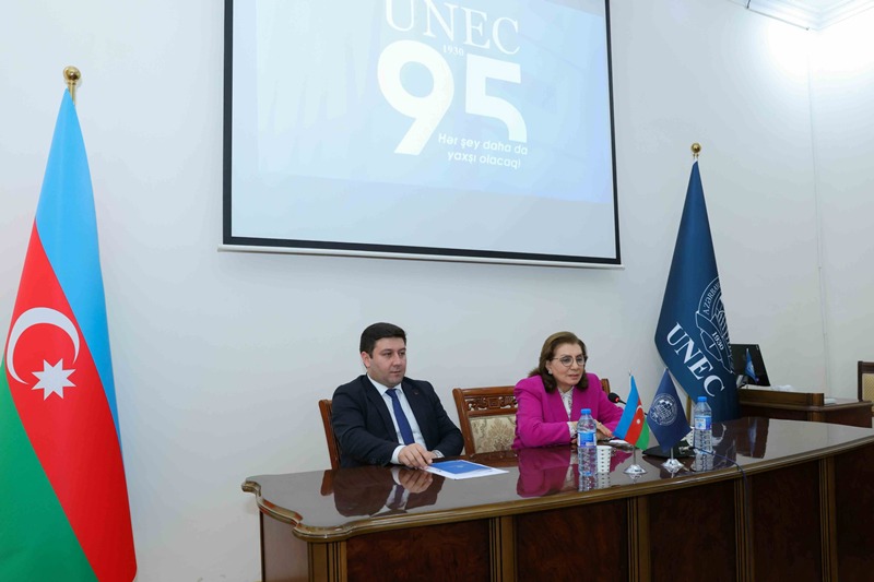 UNEC Tələbə Elmi Cəmiyyətinin (TEC) sədri, Rus İqtisad Məktəbinin III kurs tələbəsi Gülşən Yusifova, UNEC Extern Mərkəzini təqdim edərək, burada tələbələrə verilən təhsil imkanlarını təqdim edib.