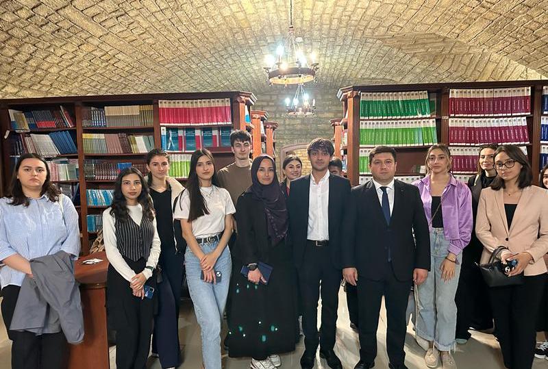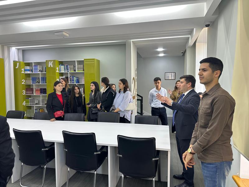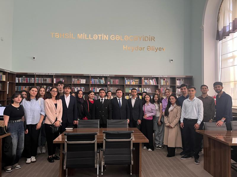 UNEC-in tələbə rektoru, İqtisadiyyat və İdarəetmə fakültəsinin IV kurs tələbəsi Nihad İsgəndərov, tələbələrə universitetin 1 saylı kitabxanasını təqdim edərək, burada tətbiq olunan açıq rəf üsulu, ənənəvi və elektron xidmətlər, dərslərə və imtahan sessiyalarına hazırlıq üçün kitabxananın fondundan necə effektiv istifadə etməli olduqlarını izah edib.