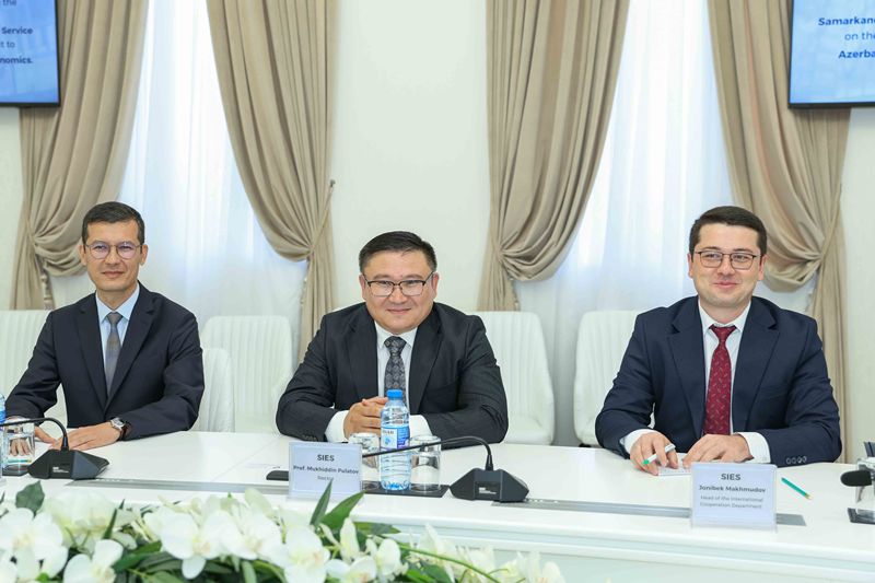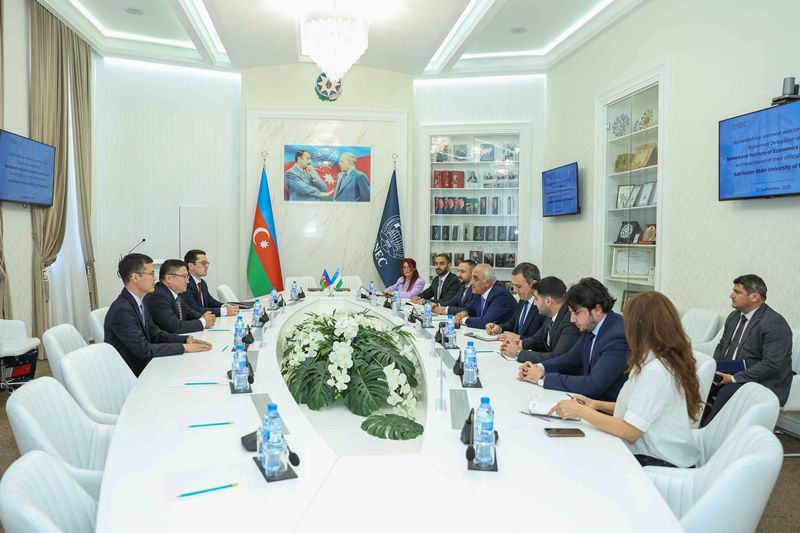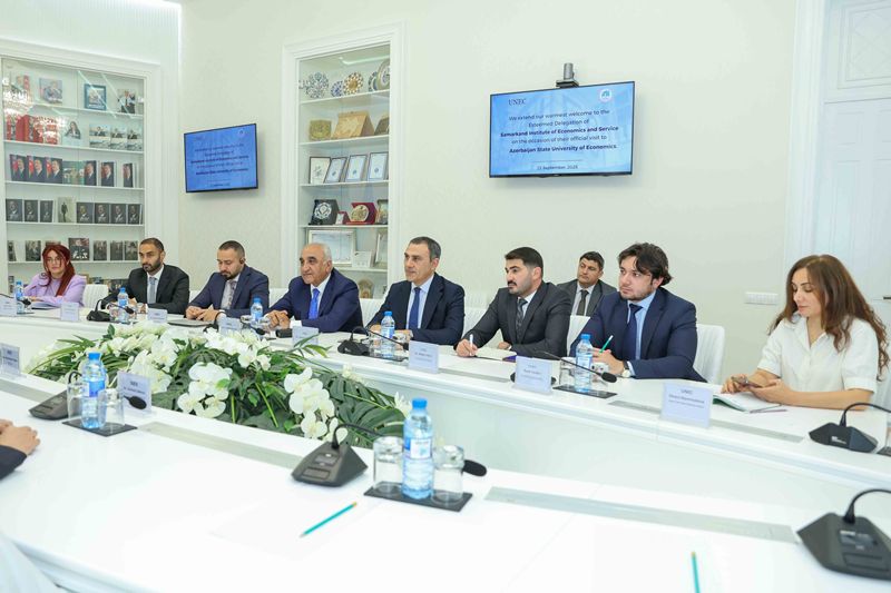 To this end, a delegation led by professor Muhiddin Egamberdiyevich Pulatov, rector of Samarkand University of Economics and Service, visited UNEC. The meeting was attended by UNEC rector professor Adalat Muradov, relevant university department heads, and the Uzbek delegation.