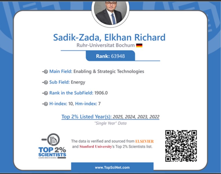 Since 2022, the Azerbaijani scholar has also been featured in the prestigious “Top 2% Scientists” ranking jointly compiled by Stanford University (USA) and Elsevier, one of the world’s leading scientific publishers. Furthermore, for the fourth consecutive year, his research has been highly assessed in the “Single Year Impact” category within the field of Economics of Technology Adoption.