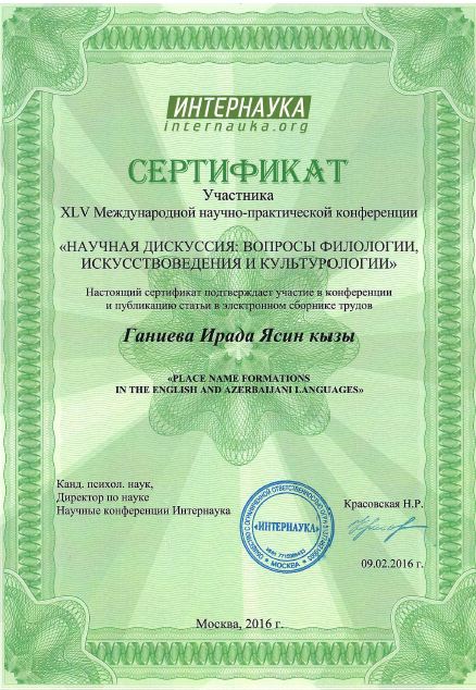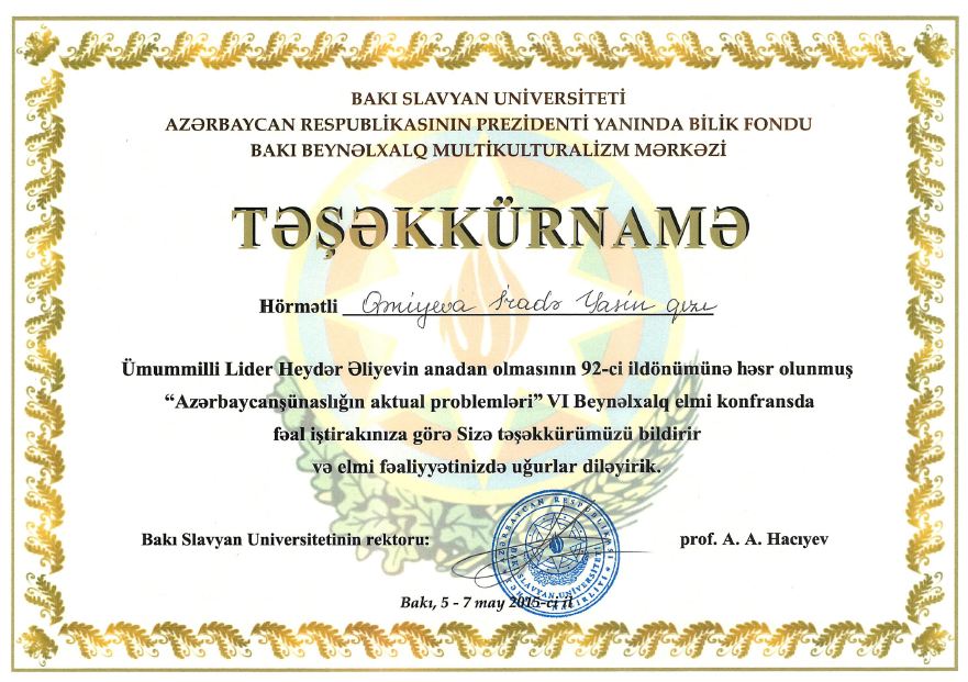 AMEA, Dilçilik İnstitutu, filologiya elmləri üzrə fəlsəfə doktoru (2023).