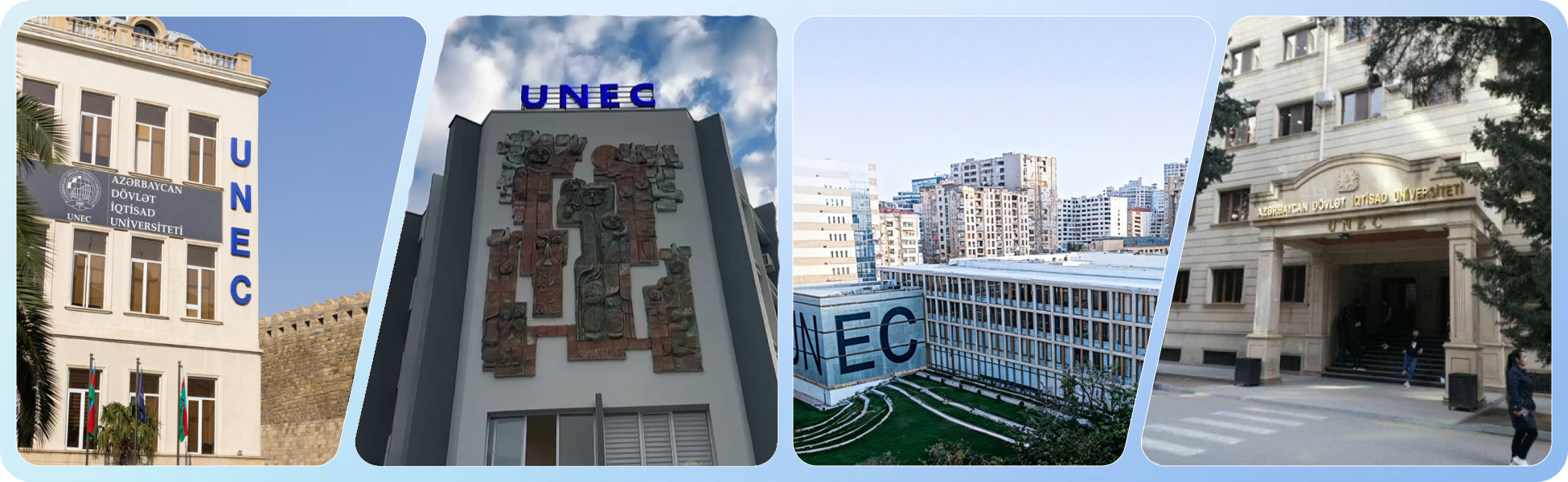 Азербайджанский государственный экономический университет (UNEC) имеет 4 учебных корпуса.