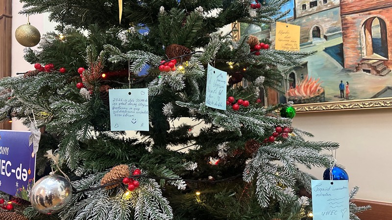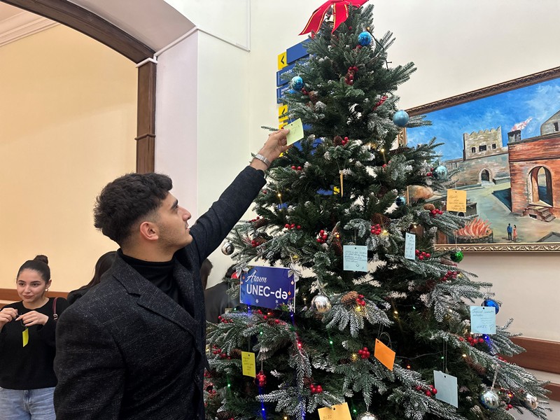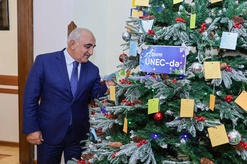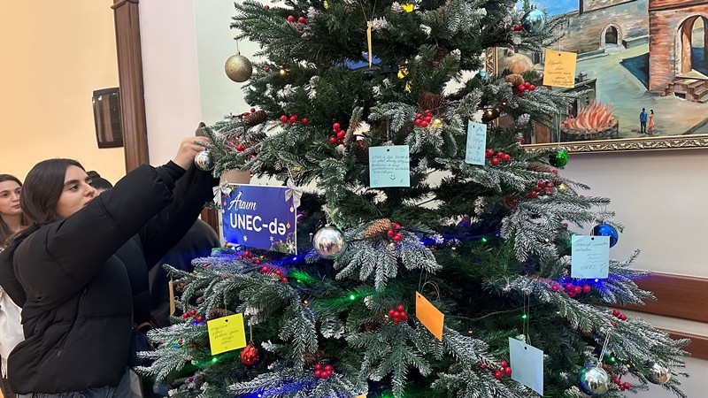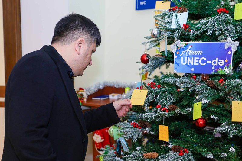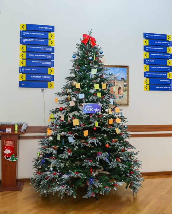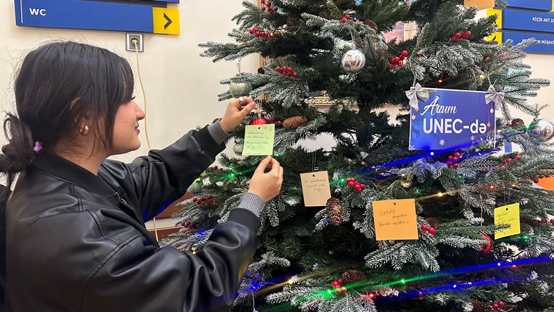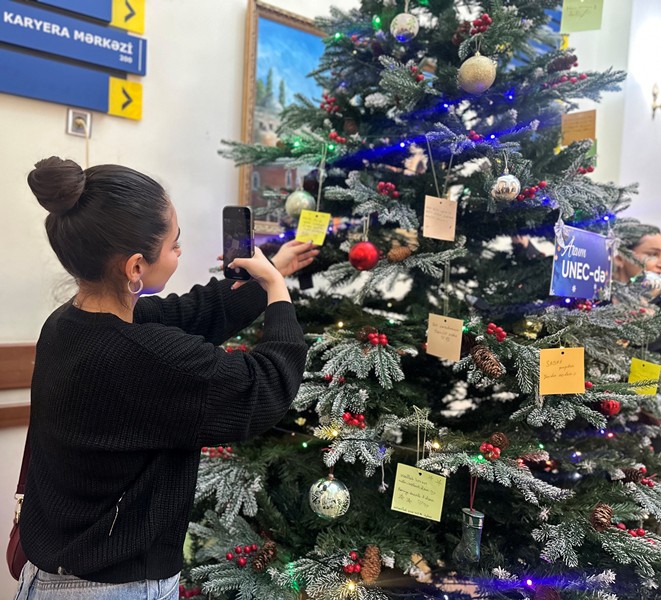 В рамках проекта студенты могут написать свои новогодние пожелания на специально оформленных открытках и повесить их на новогоднюю ёлку UNEC. Проект, реализуемый во всех учебных корпусах, создаёт праздничную атмосферу в университете и объединяет искренние пожелания студентов в одном пространстве.