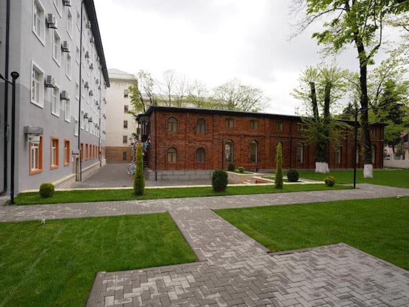 На территории общежития и во дворе проведены масштабные работы по благоустройству, заложены зеленые полосы, высажены различные деревья, гармонирующие с природой. В то же время установлены сиденья для отдыха и проведения социальных мероприятий студентов.