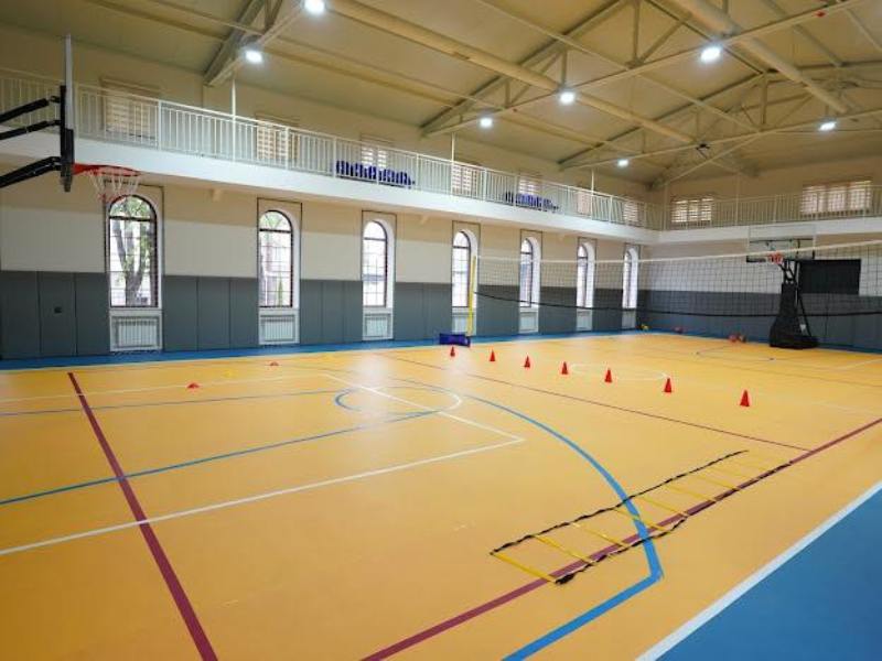 После общежития состоялось знакомство по недавно открытому спортивному залу. Было отмечено, что в зале созданы все условия для ведения студентами здорового образа жизни и занятий спортом. В спортзале, состоящем из 6 функциональных залов, имеются специализированные площадки для баскетбола, волейбола и фитнеса.